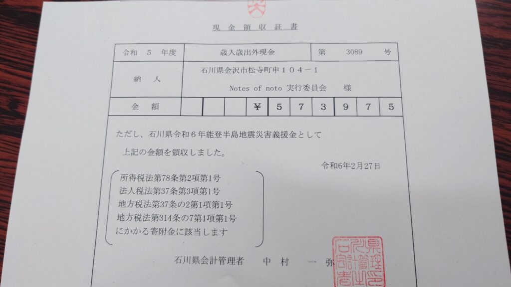 161名参加され、みなさんの善意、本当にありがとうございました! 能登のために少しでも役立てば幸いです。