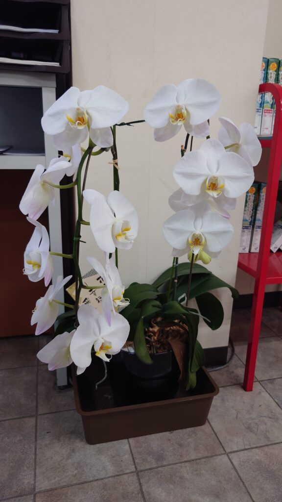 ついに満開になりました! 全て枯れてしまいましたが、事務のSさんが頑張って介抱して、見事満開になりました。 ほめてあげて下さい。喜びますから。