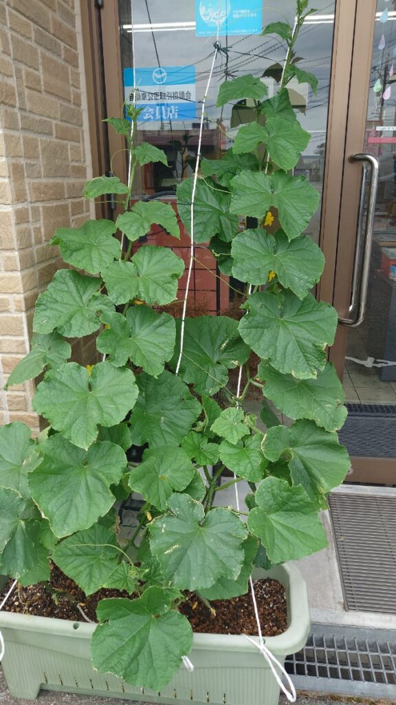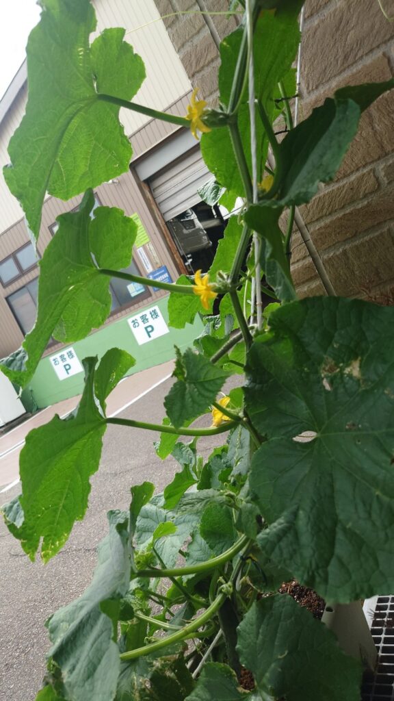 社長ブログ高温多湿のせいか、会社前のプランターのきゅうりが異常に成長しています。