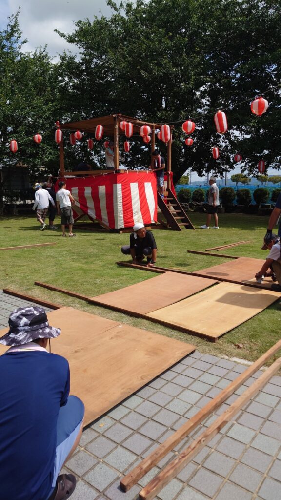盆踊りの準備。 みんなで汗かいて、なんとか今年も完了です。