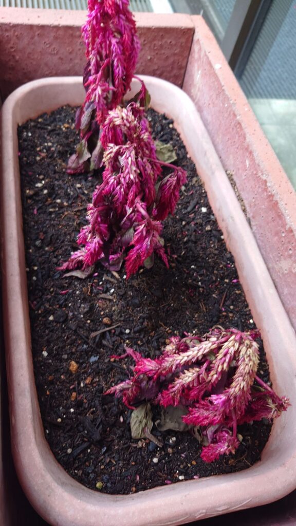 一緒に植えたケイトウも元気がない