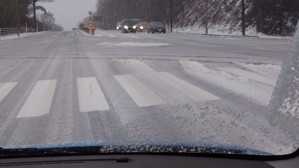 小松も産業道路あたりは、まあまあな積雪。シャーベット状となっています。