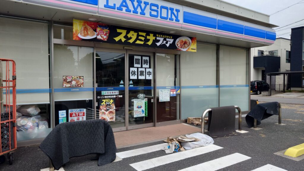 近くのローソンも完全に水没したらしくて中はそれはそれはひどい状態でした。