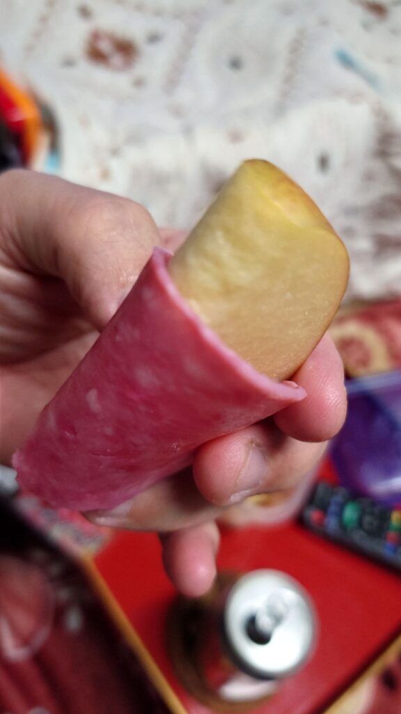 生ハムメロンの真似をして、サラミっぽいソーセージに🍎で酒の肴にならないかテスト
