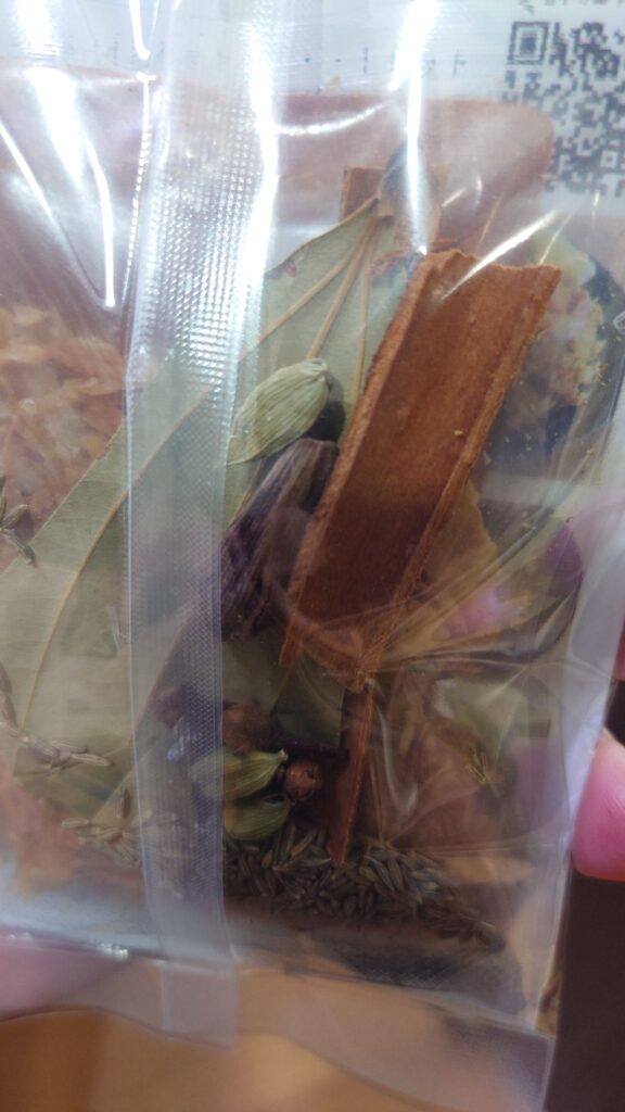 でっかいシナモンや八角やカルダモンは、香木としてダイレクトに入ってるし、作っていると家と外までもすごく美味しそうな印度カレー屋さんみたいな香りが立ち込める。