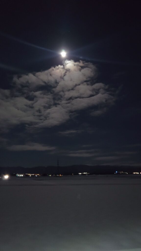 少し風はあり、氷点下で とても寒かったですが、しばらく 月を眺めていました。