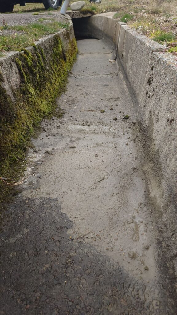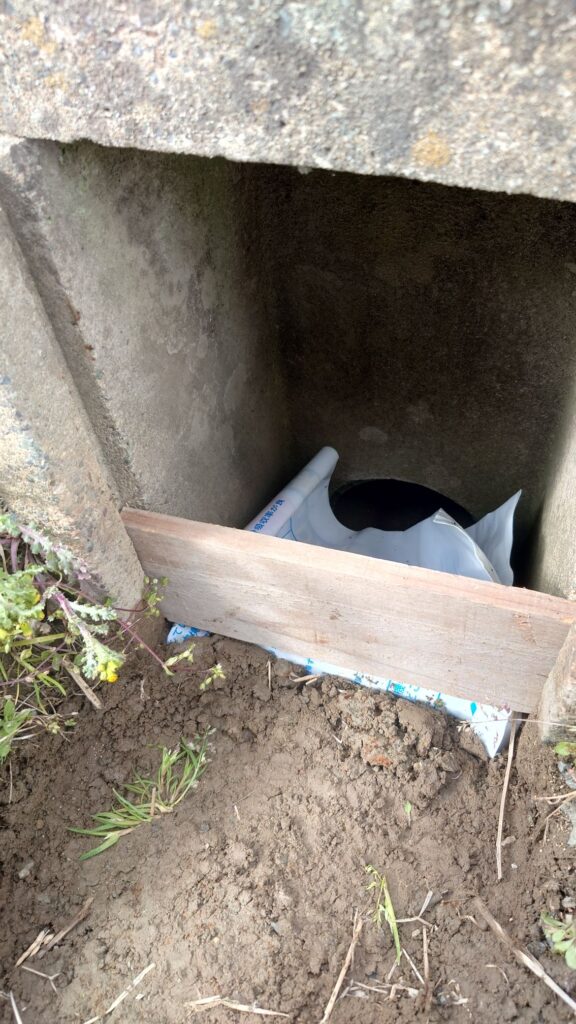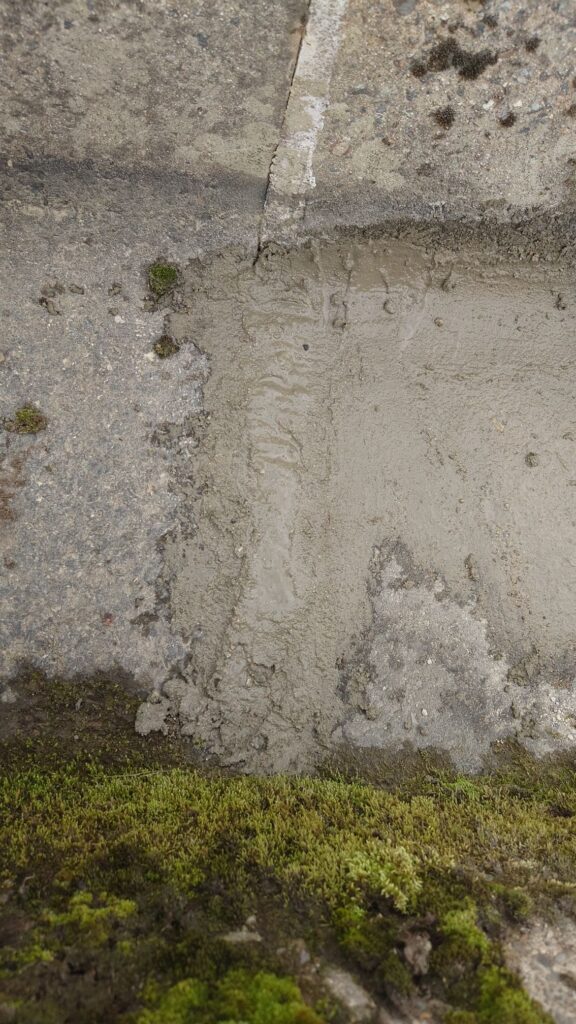 慣れないモルタルと砂利と水を混ぜて隙間と下にできた空間に流し込み、もう10年くらいもつようにしたつもり⋯